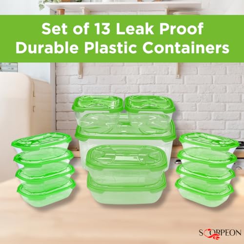 Scorpeon 13-Pack Food Storage Containers – BPA-Free, Airtight & Leakproof – Microwave, Freezer & Dishwasher Safe – Meal Prep, Pasta, Cereal, Soup, Salad (500ml–6700ml)