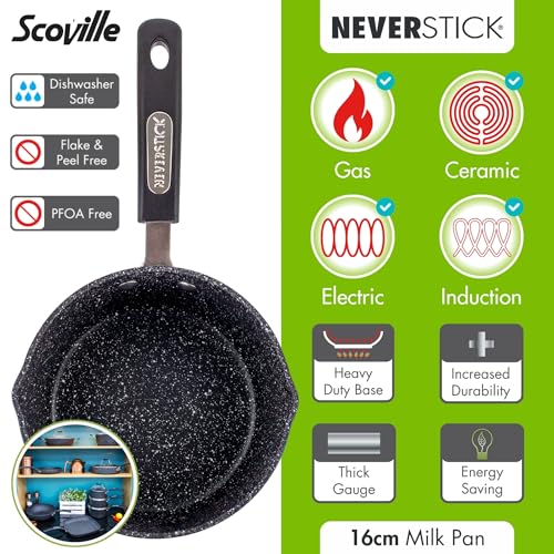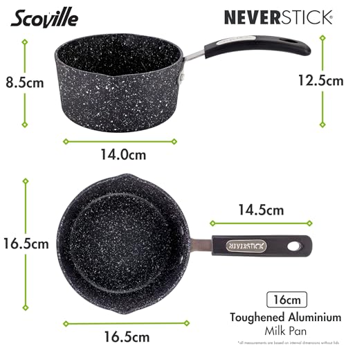 Scoville NEVERSTICK 16cm Milk Pan with Pouring Lips, Non-Stick Milk Pan, 1.1L, Suitable for All Hobs Including Induction, Perfect for Warming Sauces, PFOA Free, Dishwasher Safe, Aluminium, Black