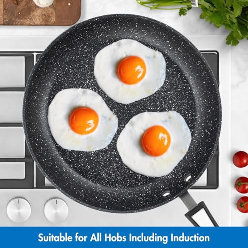 Scoville Xtra 28cm Frying Pan, Non Stick Frying Pan, Neverstick Coated, Suitable for All Hobs, Rapid Heat Conduction, Perfect for Frying Eggs, Ergonomic Handle, Aluminium, Black [Amazon Exclusive]