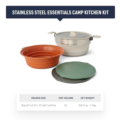 - COMPACT CAMPING COOKWARE SET: This camping cooking set includes a 5L collapsible pot, colander, and two cutting boards, designed to make outdoor meal preparation a breeze… from boiling water to chopping vegetables.