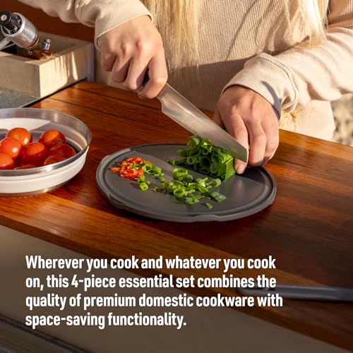 Sea to Summit – Detour Essentials Camp Kitchen Kit – 2 to 4 Person, 4 Piece – 5L Collapsible Pot & Colander + Lid + 2 Cutting Boards – BPA-Free – Silicone & Stainless Steel Camping Cookware – 1681g