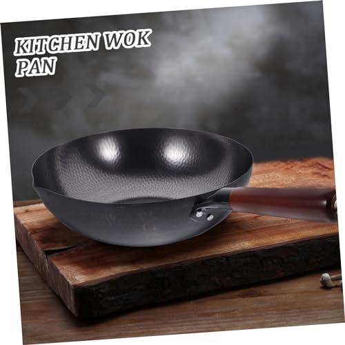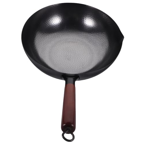 SECFOU Iron Wok Traditional Kitchen Frying Pan Heavy-Duty Uncoated Iron Wok for Gas Stoves Ergonomic Handle for Stir Fry and Versatile Cooking