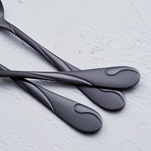 - INCLUDE: This Black silverware set contains 12 dinner knives, 12 dinner forks, 12 dinner spoons, 12 salad/dessert forks, and 12 dessert/teaspoons, which are great suitable for everyday use or preparing for dinner or a party and more.
