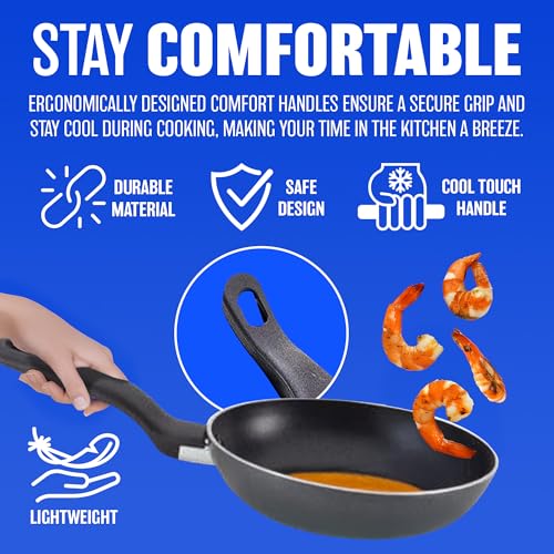 - ✔️ COMFORT HANDLES – The handles are ergonomically designed for comfort, a secure grip and to stay cool when cooking with all pans in this range oven safe up to 180°C