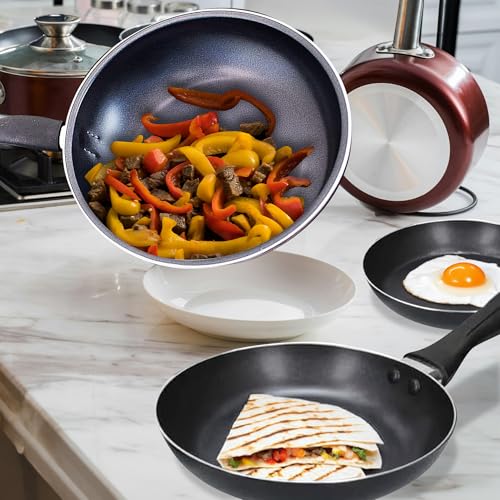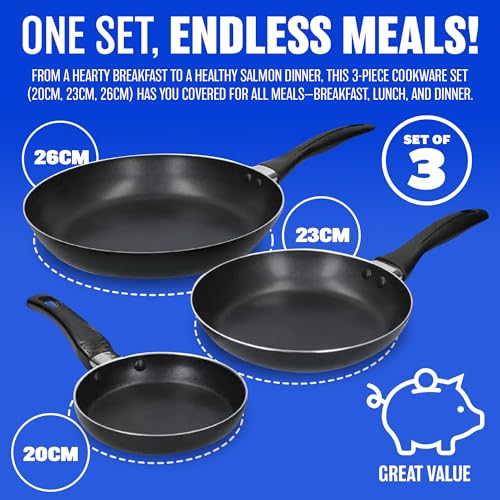 Set of 3 Frying Pan – Non Stick Fry, Kitchen, Eggs, Breakfast, Dinner, Pasta,Cookware Set | Kitchen Cookware | Home Chef | Breakfast, Lunch, Dinner & Cooking | Combo Frying & Grill Pan