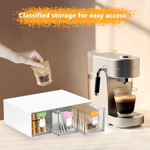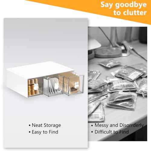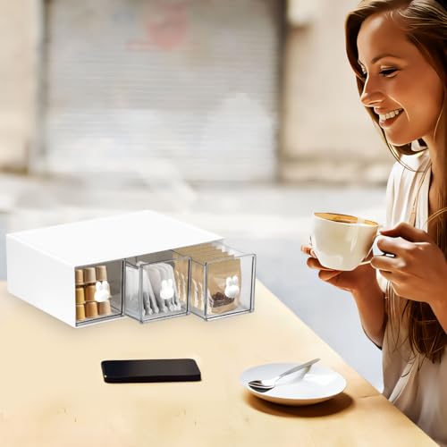 SHAIDOJIO 1PCS Plastic Tea Box Organiser, Clear Tea Bag Organiser with 3 Drawer, Stackable Coffee Bag Holder, Acrylic Teabag Storage Coffee Station Acrylic Storage Container for Office Kitchen