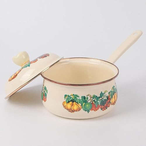 Sharplace Small Enamel Milk Pot Milk Pan Cookware with Lid Sauce Pan Butter Melting Pot for RV Travel Kitchen Induction Cooker Camping
