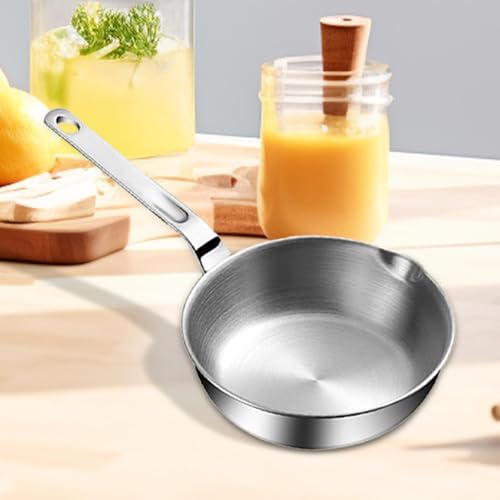 Sharplace Stainless Steel Frying Pan Egg Frying Pan Oil Warmer Uncoated Anti Scald Handle Butter Melting Pot Round Skillets for Kitchen, 14cm