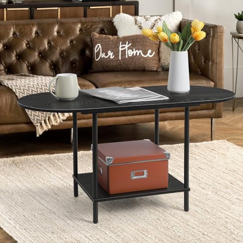 Shinoske Coffee Table for Living Room, Oval coffee Table with 2 Tier Storage for Home Office,Small Dining Center Tables for Living Room/Office, Black