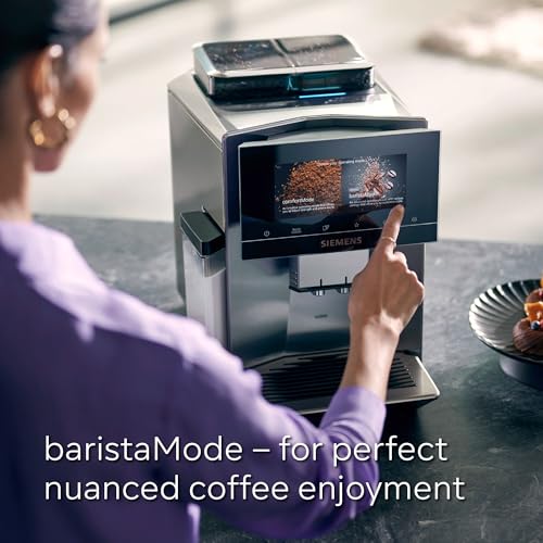 SIEMENS EQ900 Fully Automatic Bean to Cup Coffee Machine, 6.8" Touch Screen Display, Cup Warmer, dualBean System, baristaMode, beanIdent System, 30+ Beverages with Home Connect, TQ907GB3