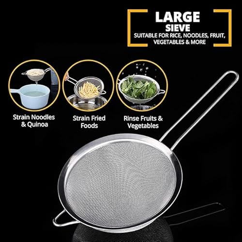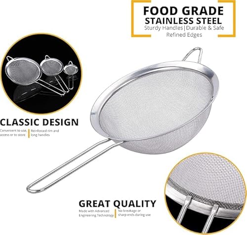 - Reinforced and Corrosion-Resistant: Crafted to the highest safety regulations, our fine sieves come with a wide rim for enhanced durability. They are resistant to rust, corrosion, bending, and warping, ensuring lasting quality in your kitchen.
