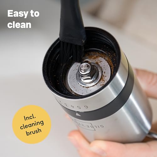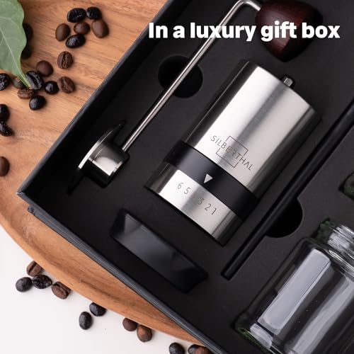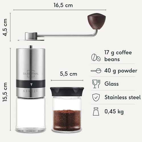 SILBERTHAL Manual Coffee Grinder – Stainless Steel – 6 Adjustable Levels – Portable Coffee Bean Grinder – with Storage Container and Cleaning Brush