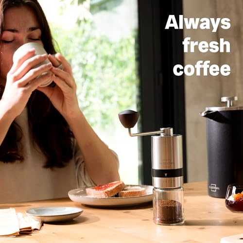 - ✔ PRESERVES AROMA – Grinding manually prevents overheating of the beans and preserves the aromas of coffee. BPA-free components ensure long freshness and prolongs the intensity of the taste and smell of coffee.