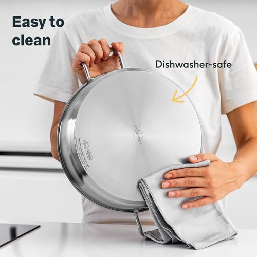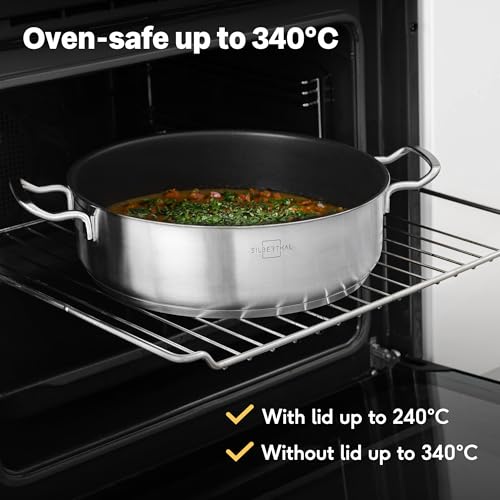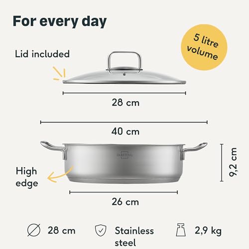 SILBERTHAL Serving Pan 28 cm High Rim Induction Stainless Steel Coated Sauté Pan with Lid 5 L Oven Safe