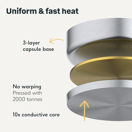- ✔ Healthy and time saving cooking Even and fast heat distribution via a 3 layer sandwich base. The high temperature of the frying pan enables short preparation times and preserves valuable nutrients and valuable vitamins in the food
