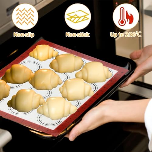 - Durable and Heat Resistant: Crafted from BPA-free food-grade silicone and reinforced with fiberglass, our baking mats withstand temperatures from -40°F to 450°F (-40°C to 230°C). They are thicker than standard mats at 0.75mm, ensuring durability and longevity in your kitchen.