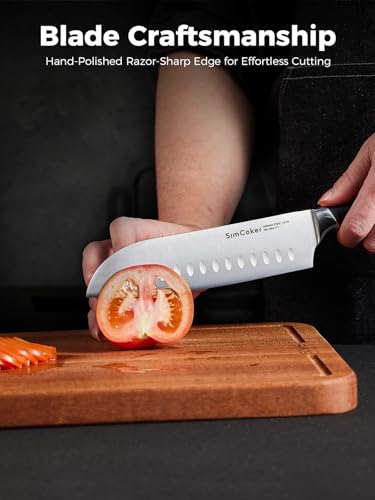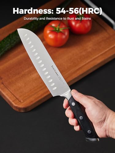 SimCoker Santoku Knife 7-Inch, Kitchen Knife, Chopping Knife, German High Carbon Stainless Steel, Ergonomic Pakkawood Handle, 3-Year Warranty, Gift Box for Home & Family