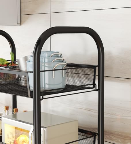 Simpa 4 Tier Metal Multipurpose Wheeled Storage Basket Trolley Utility Cart – Black 84cm (H) x 44cm (W) x 27cm (D)
