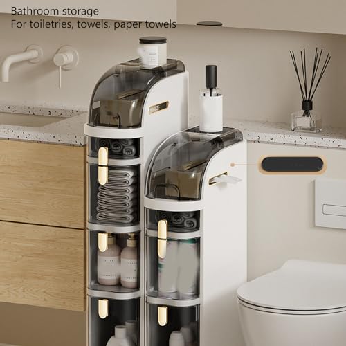 Small Bathroom Storage Cabinet, Slim Bathroom Storage Organizer Corner Floor Cabinet Slim Narrow Toilet Paper Cabinet with Drawers & Casters for Small Spaces Skinny Kitchen