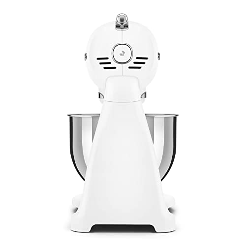 Smeg SMF03WHUK Full Colour Stand Mixer, Retro 50's Style with 4.8L Stainless Steel Bowl, Safety Lock, 10 Variable Speeds, 800W, White