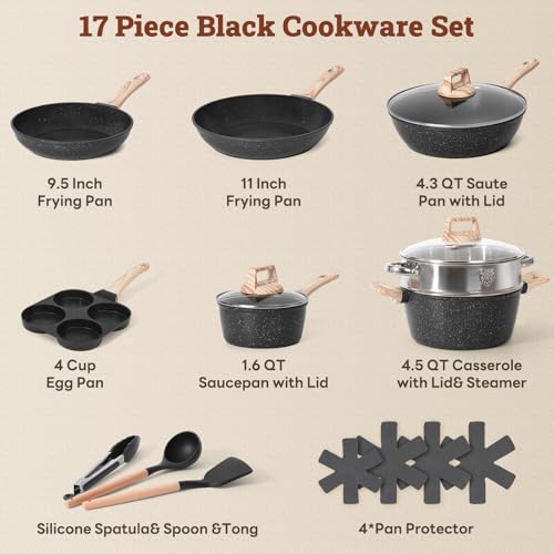 SODAY 13Pcs Pots and Pans Set Nonstick Cookware Sets, Black Granite Induction Cookware Non Stick Cooking Set with Frying Pans & Saucepans(Non PFOS, PFOA)