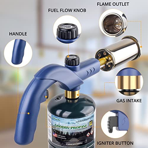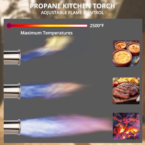 - Adjustable Fuel Control: You can easily modify the flame size to suit your requirements. Lighting your charcoal grill or campfire will be a breeze as you watch your fires come to life with this robust propane torch. The black nickel wire-drawing process of the torch head ensures it withstands high temperatures.