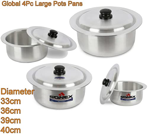 - (Quality) This pan Pot have Aluminium Material for Optimum heat conductivity. These pots are used for cooking large quantities and better heat transmission. Sizes: Available in 33CM 36CM 39CM