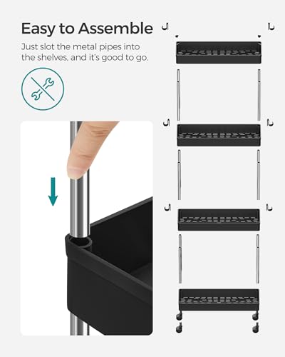 SONGMICS 4-Tier Storage Trolley, Rolling Cart with Wheels, Space-Saving Kitchen Trolley for Office Bathroom, 14.4 x 42 x 86 cm, Ink Black KSC008B01