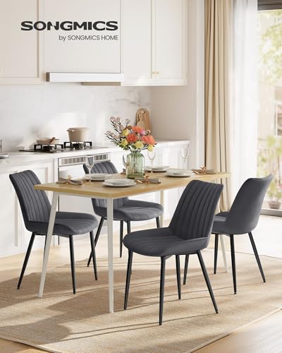 SONGMICS Dining Chairs Set of 2, Upholstered Kitchen Seats, Max. Load 120 kg, Steel Legs, Curved Backrest, for Dining Area, Grey and Ink Black LDC090G05