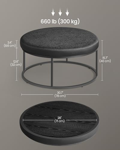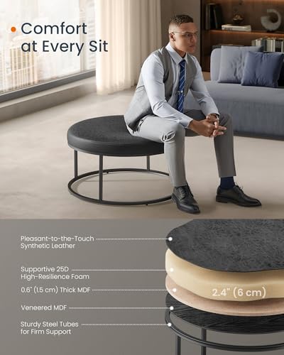 SONGMICS HOME LUIZ Collection – Ottoman, Round Coffee Table, Footstool, Reversible Top, Padded Seat, Side Table, Minimalist, Steel Frame, Holds up to 300 kg, for Living Room, Ink Black LOM078B51