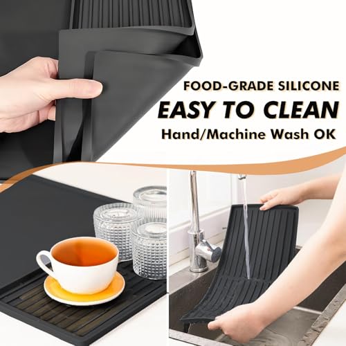 SOQKEEN Large Silicone Mat Under Coffee Machines, 24''x16'' Silicone Coffee Mat with Detachable Drying Mat for Kitchen Counter, Coffee Bar Accessories Fit Under Coffee Pot Espresso Machine Dish Rack