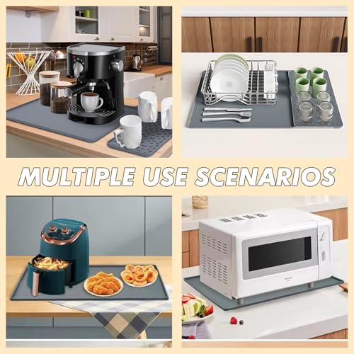SOQKEEN Silicone Coffee Mat, 24''x16'' Coffee Machine Mat with Detachable Dish Drying Mat for Kitchen Counter, Large Silicone Coffee Bar Accessories Fit Under Coffee Pot Espresso Machine Dish Rack
