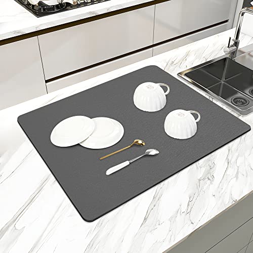 SOSMAR Draining Mat, Super Absorbent Quick Dry Dish Drying Pad, Kitchen Dish Drainer Mat for Sink, Non-Slip Counter Protector for Coffee Machine, Grey, 40x50cm
