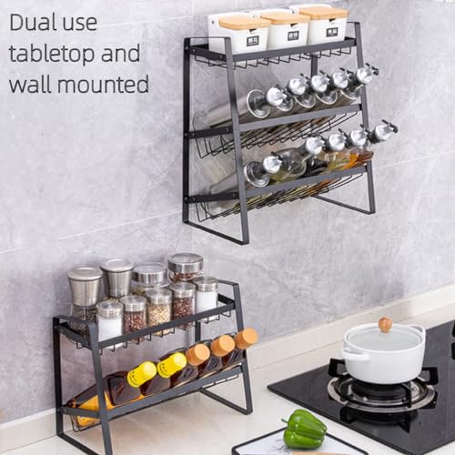 Spice Rack nizer, 3-Tier Adjustable Kitchen Storage Shelf, No Assembly Required, Foldable Multi-Purpose Spice Holder for Countertop and Pantry, Perfect for Home Cooking.