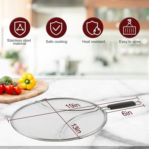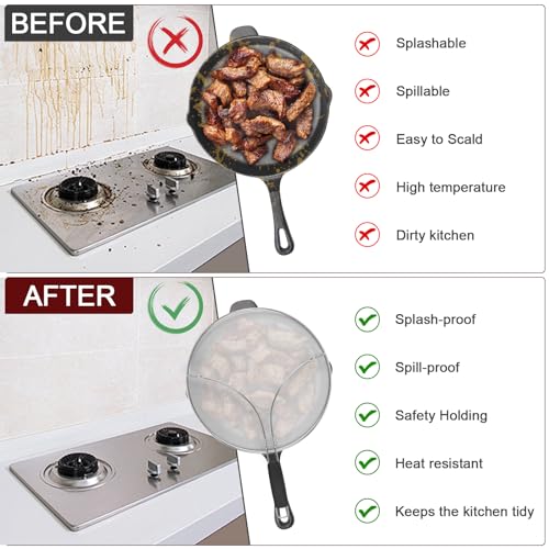 - Block 99% of Splashes: Constructed from premium 304 stainless steel, this 33 CM / 13 IN large frying pan splatter guard’s fine mesh facilitates steam flow while efficiently blocking 99% of liquids from escaping, effectively averting hot oil burns and spills.