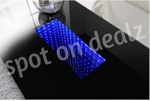 - STURDY, MODERN & UNIQUE DESIGN: Blue coloured LED Lighting in centre section. Operated by 4xAA batteries (not included). Ultra-modern glass and high gloss table with sleek curved edges.