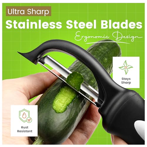 - Extra Features You’ll Love – The Swivel Peeler and Y Peeler each include a built-in blemish remover – perfect for potatoes and apples. Durable enough for daily use, this set is your go-to for prepping everything from soft-skinned kiwis to tough butternut squash.