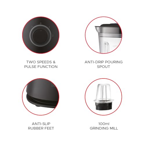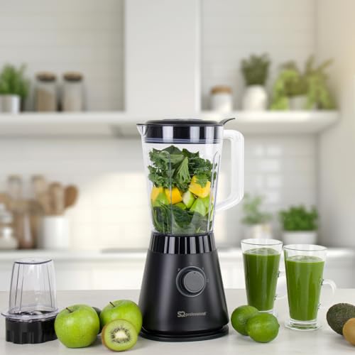 - SQ Professional Blitz 600W Blender with 1.5L Plastic Measuring Jug & Grinder – Ice Crush Function, Milkshake & Smoothie Maker, Black