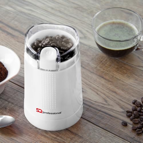 SQ Professional Blitz Coffee Grinder Electric Fast Grinding for Coffee Beans Nuts Herbs & Spices – Spice Mill One Touch Control Button & Stainless Steel Blades – 150w
