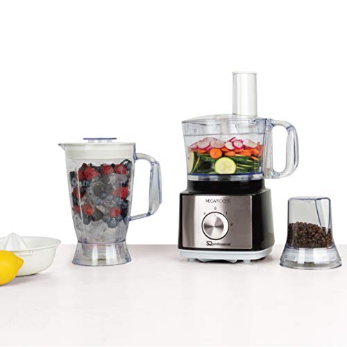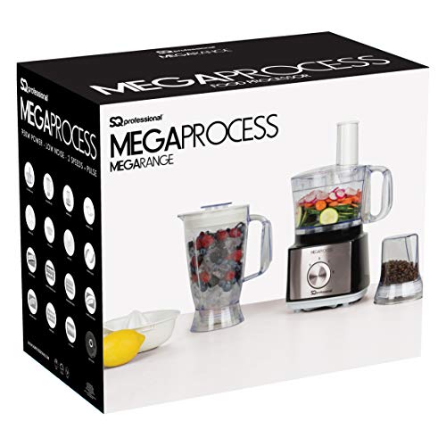SQ Professional MegaRange – MegaProcess Food Processor and blender 750w -2.0L Mixing Bowl, 1.8L Blending Jug, Grinding Mill -Mixer, Crusher, Grinder, Citrus Juicer (Black-White)