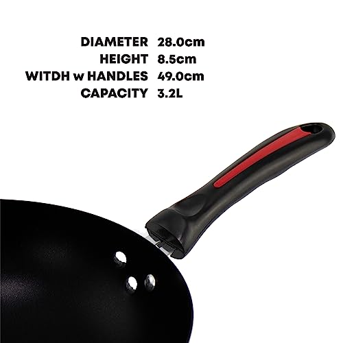 SQ Professional Ultimate Carbon Steel Wok – Non Stick Deep Stir Fry Pan for Induction Gas- Electric – Halogen – Ceramic & Induction Hobs – Frying Pans – Saute Pan – (28cm)