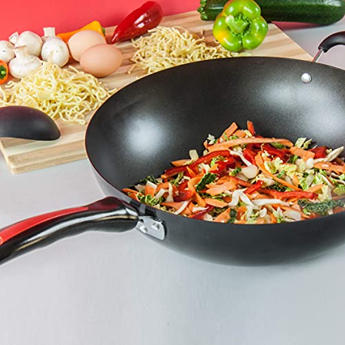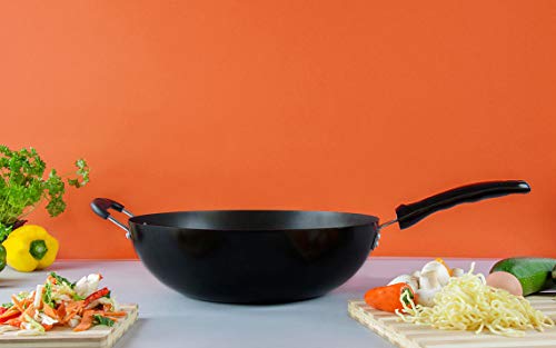 - 🥨 ORIGINAL TASTE: The wok pan reacts fast to temperature changes and is precisely designed to seal in the juice and flavour of the contents. Heat is less concentrated on the flat bottom and better diffused up the walls due to the greater curve and taller walls. The high curvature creates a bigger base for greater heat transfer area, allowing the burner flames to hug the enormous wok clearly.