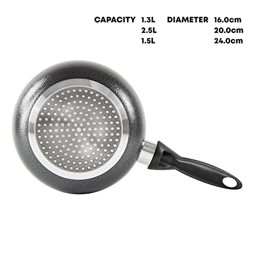 SQ Professional UNA Non-Stick Aluminium Essential Kit – 3pc Saucepan & Frying Pan Set – Pot & Pan Set with Tempered Glass Lid & Steam Vent -Saucepan 16cm & 20cm – Frying Pan 24cm