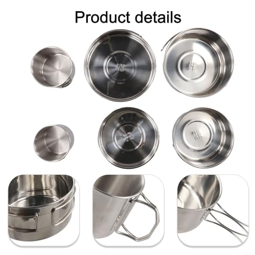 Stainless Steel Camping Cookware Set, Outdoor Cooking Pots and Pan with Foldable Handles Portable Stackable Kitchen Equipment for Hiking Backpacking