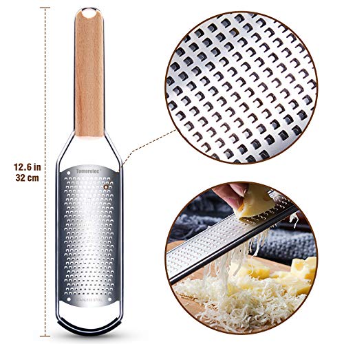 Stainless Steel Cheese Grater with Natural Wood Handle for Parmesan Cheese Lemon, Ginger, Cheese, Nutmeg, Potato, Chocolate and Garlic Small