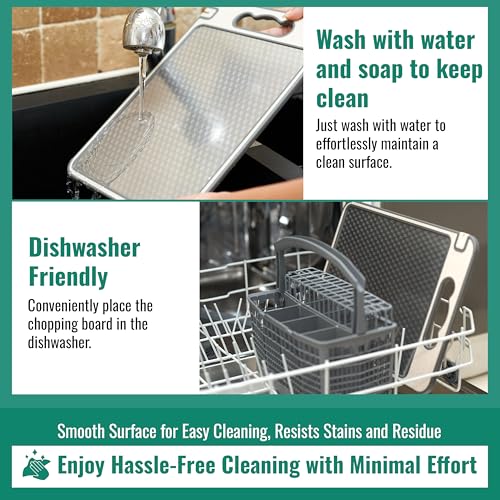 - SAFE, STABLE & EFFICIENT Anti-slip silicone edges keep the chopping board securely in place, ensuring stable cutting with no slipping or sliding , chop with confidence and precision.