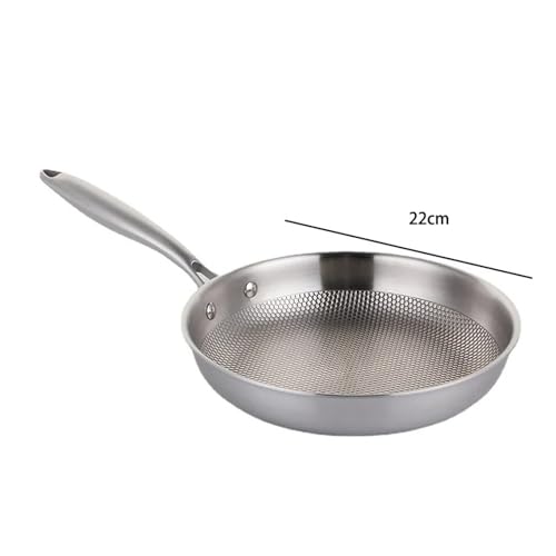 Stainless Steel Frying Pan Wok Uncoated Kitchen Cookware for Gas Stove Induction Cooker Non-Stick Pan (22cm)