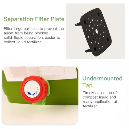• Compost Liquid Faucet:There is a stock solution collector at the bottom. Just turn the switch and the liquid produced during the fermentation process flows out of the tap.