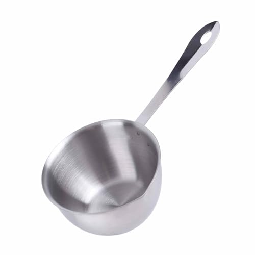Stainless Steel Milk Warmer Pan, 300ml Capacity, Flat Induction Base, Double Pouring Spouts, for Melting Butter Cheese Chocolate