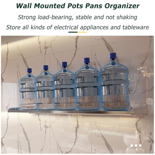 Stainless Steel Wall-Mounted Micro Oven Rack with Pot & Pan Holders – Space-Saving Kitchen Storage Multifunctional Cookware Shelf for Efficient Home nization.